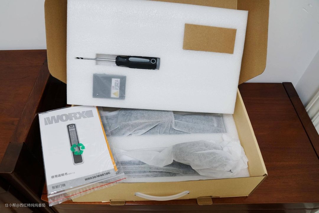毕竟是做工具起家的企业,螺丝刀虽然是附赠的工具,但是也非常扎实,并非一次性是用那种。盒装附件包里面包含了两张门卡,一条 USB充电线,一小袋润滑剂和若干螺丝 ▲