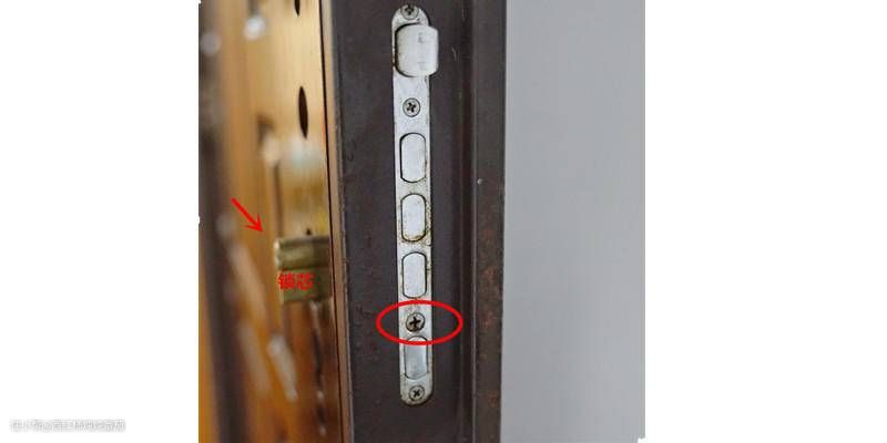 更换锁芯也非常方便:不需要抽出整个锁体,只要拧出上图圆圈中的螺丝,然后捏住门上露出来的锁芯,将其整个抽出即可 ▲