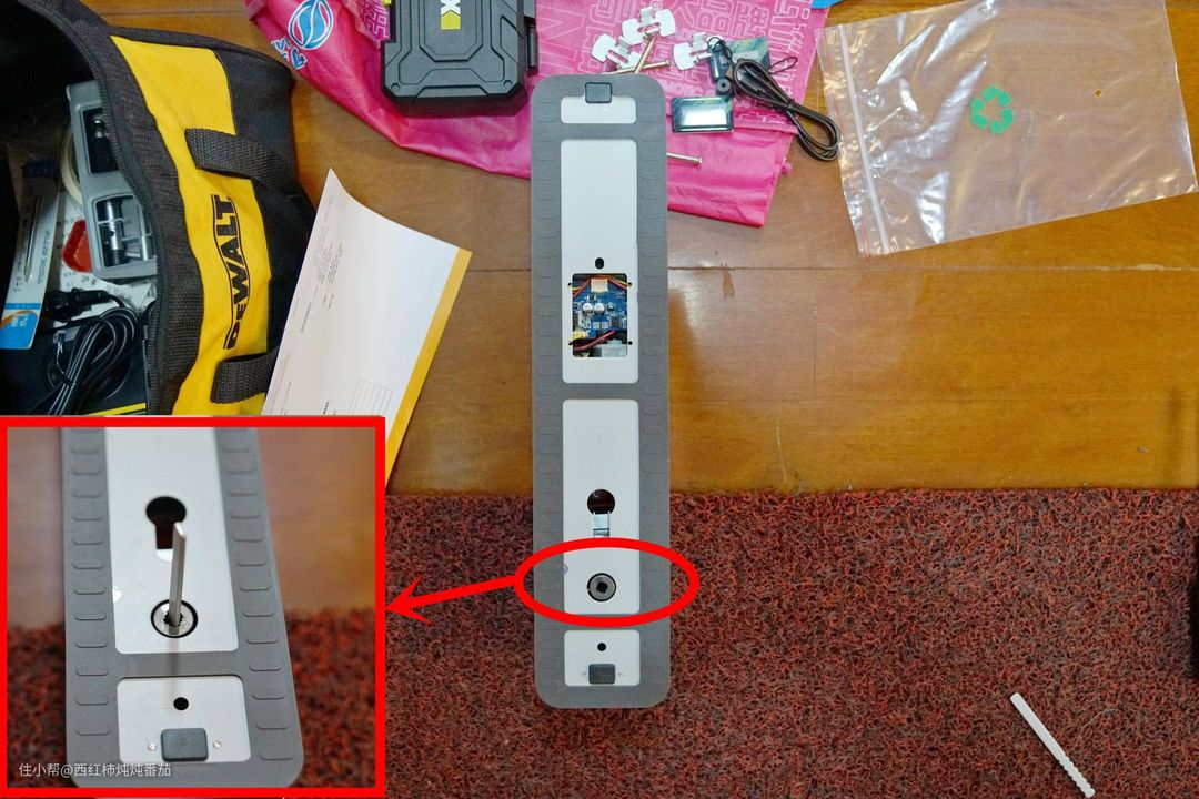 这个位置是用来从内部插入钥匙,控制锁芯动作的。这也是这款威克士指纹锁不需要更换锁体的秘密所在。