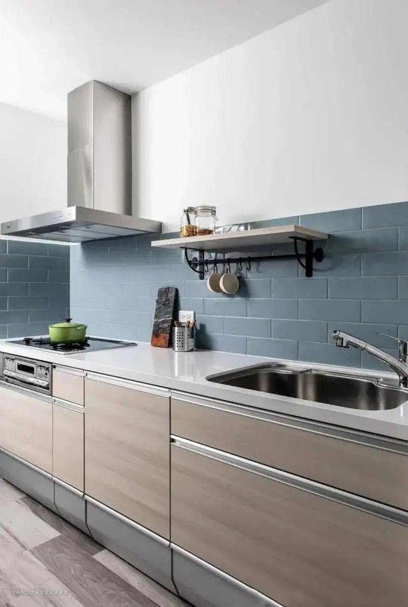 除此之外还需注意,水槽尽量离灶台远一些,防止洗东西的时候水溅到灶台里;也不可太远,取水会不方便。