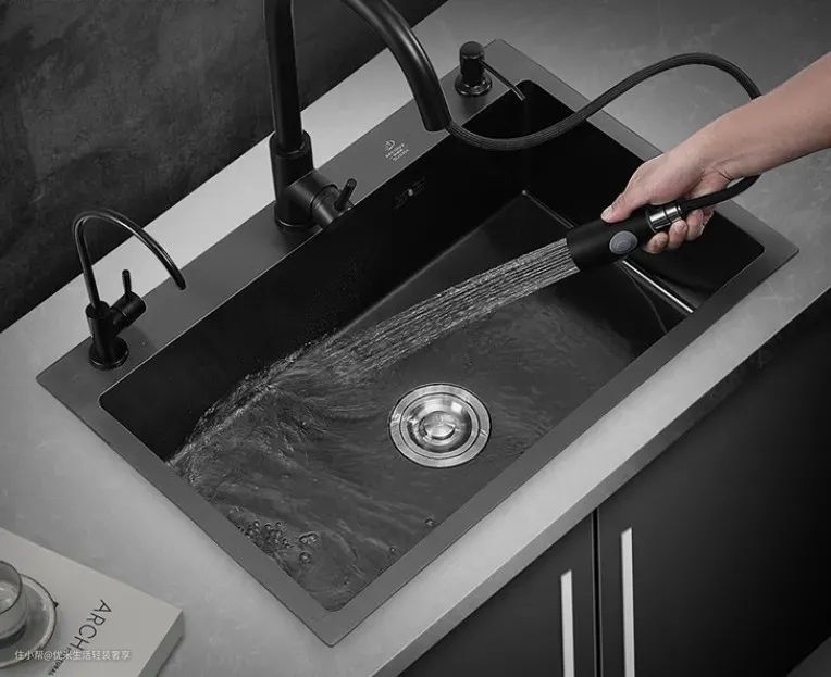 经济实惠优选不锈钢水槽,对颜值要求比较选择石材或者陶瓷水槽。