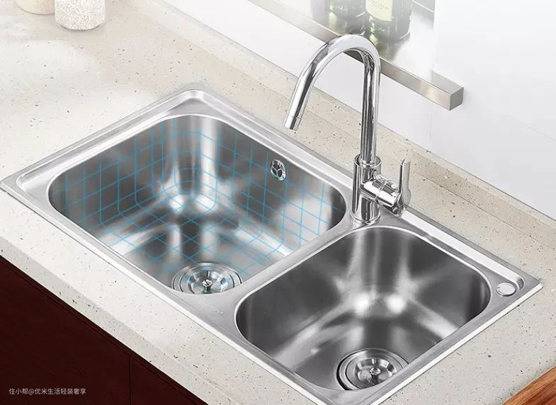 大部分家庭都会选择不锈钢材质的水槽,不过购买的时候要认准SUS304的标识就行,304不锈钢抗腐蚀能力好,适合厨房。
