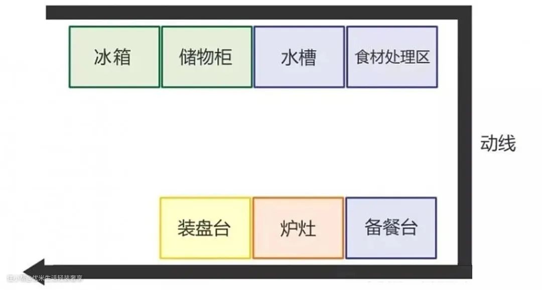 厨房的动线一般是按照拿>洗>切>煮>装的流程来设计的,也就是说,水槽的旁边是需要留有操作空间,方便切菜和处理食材,因此,水槽的位置需根据不同的厨房布局来决定。