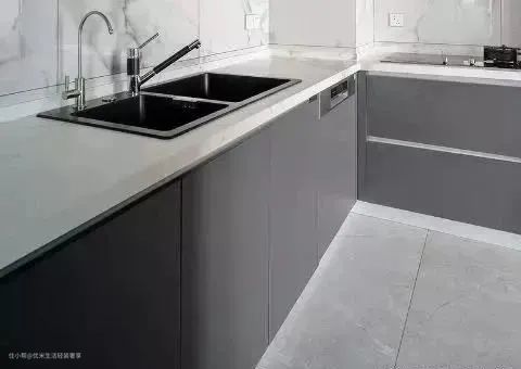 只不过安装起来比较麻烦,台面开洞形状比较复杂,不过这也是装修师傅的事儿,咱不用操心。但水槽和台面的接缝如果做不好的话,还是容易积累污垢;