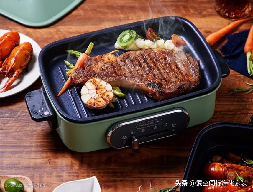 多功能料理锅实质上就是电锅,插电使用,没有明火。搭配不同的烤盘,只需要通过温度调节杆或旋钮,一锅就可以实现多种烹饪方式。