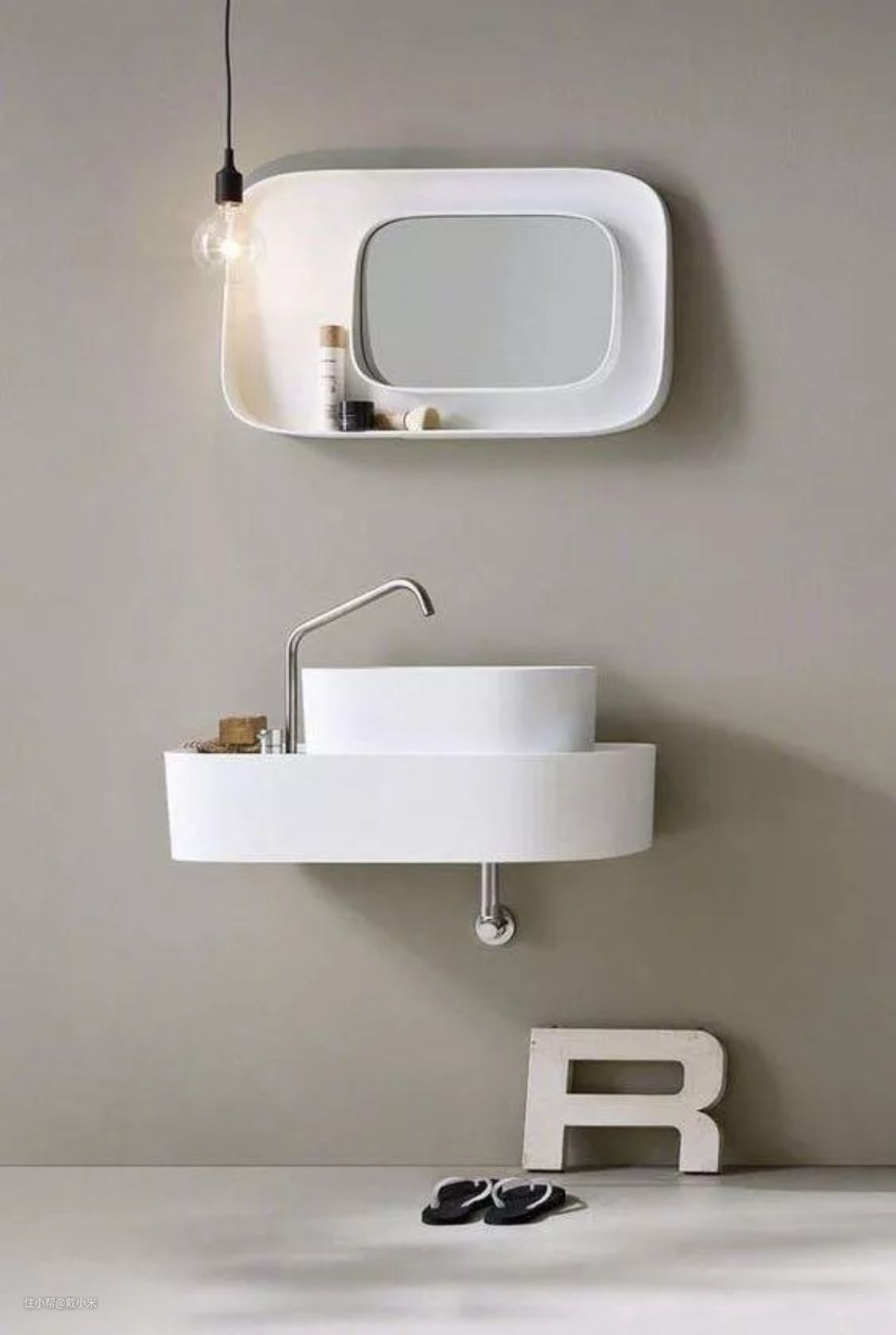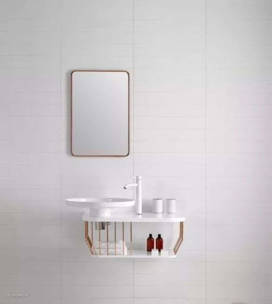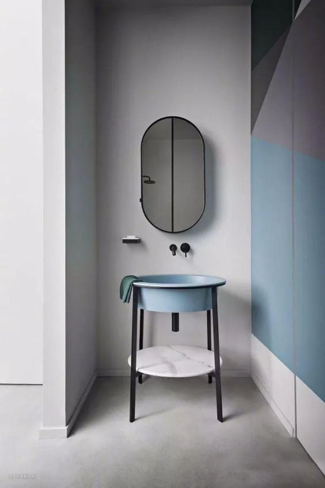 有些家庭追求简单高级,不喜欢过于繁琐,放很多杂物。越简单越能体现艺术感。一盏灯,一个镜子,一个小小的洗脸盆,还具有储物功能。