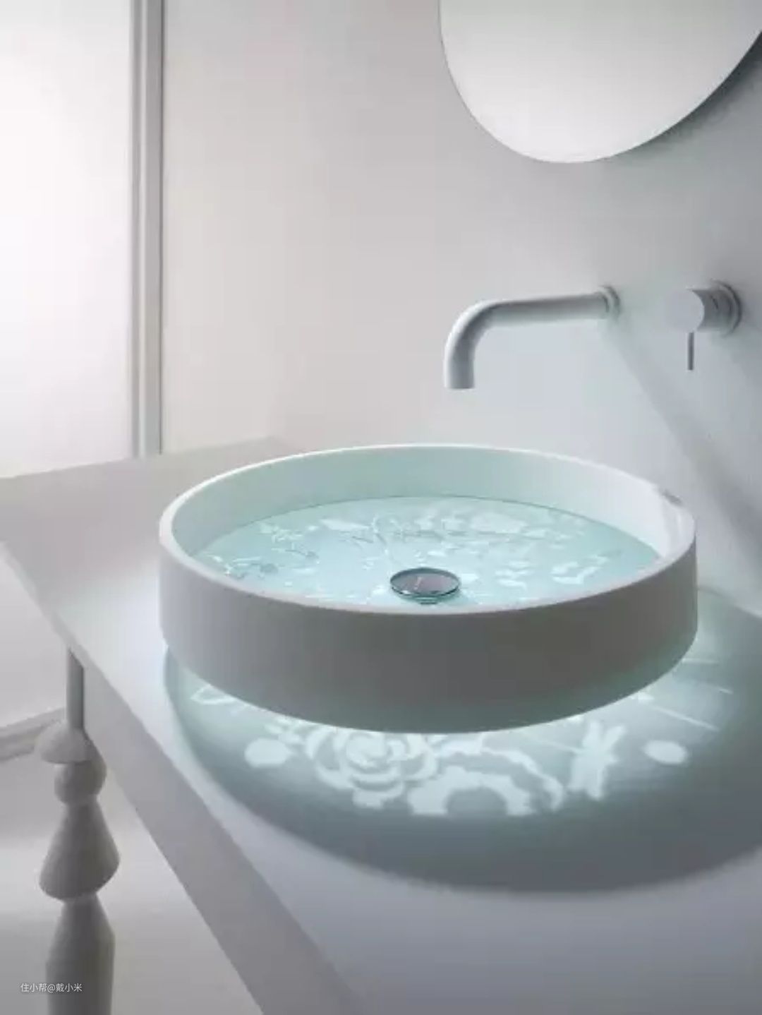 在洗手池上做手脚是司空见惯的事,一个小设计,每天拥有好心情。洗手池底部做了镂空的花雕设计,在光的映衬中,十分有艺术感。