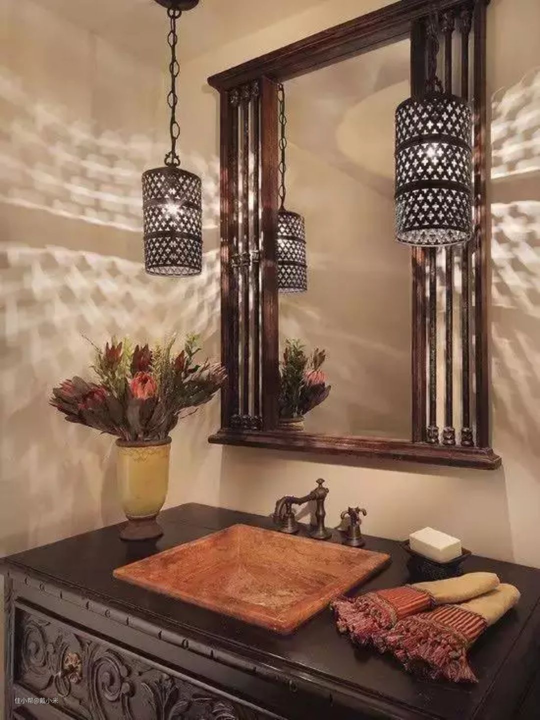 喜欢复古格调的业主不妨试试下图的装修效果,浓浓的民国风范。木质盆和木质的禁止都是恰到好处的温柔。