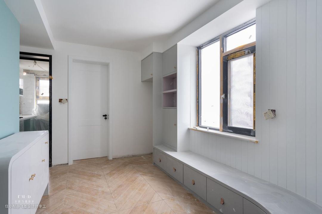合肥这位业主家,面积只有60平,却照样做了两室一厅,一点不拥挤,其中客餐厅做了开放式一体化设计,没有传统的沙发布局,将90度转角墙面变为弧形墙面,紧靠墙面打上了一整排收纳卡座,周围邻居过来都夸:会装!
