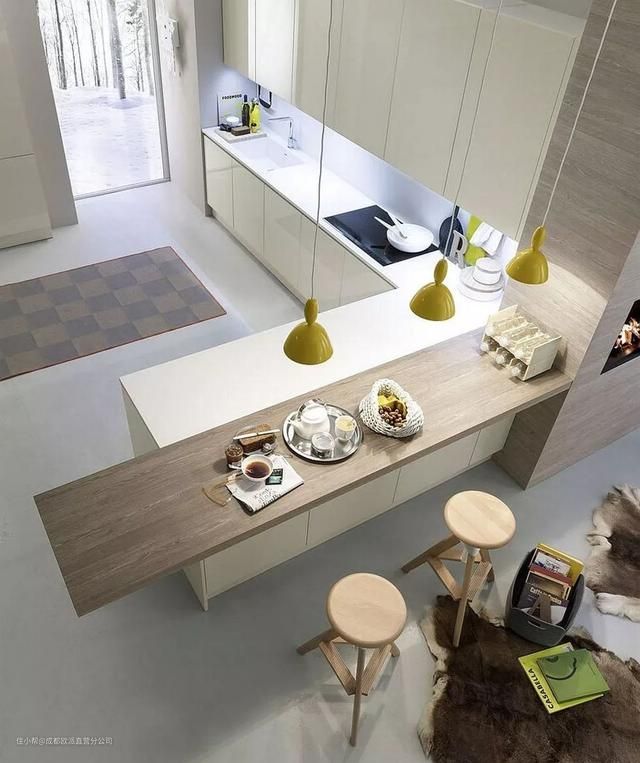你可以在本文里找到比较经典的厨房吧台设计方案,体会最开始吧台之所以成为一个厨房元素的演变,以及吧台在厨房空间每1㎡的合理利用。