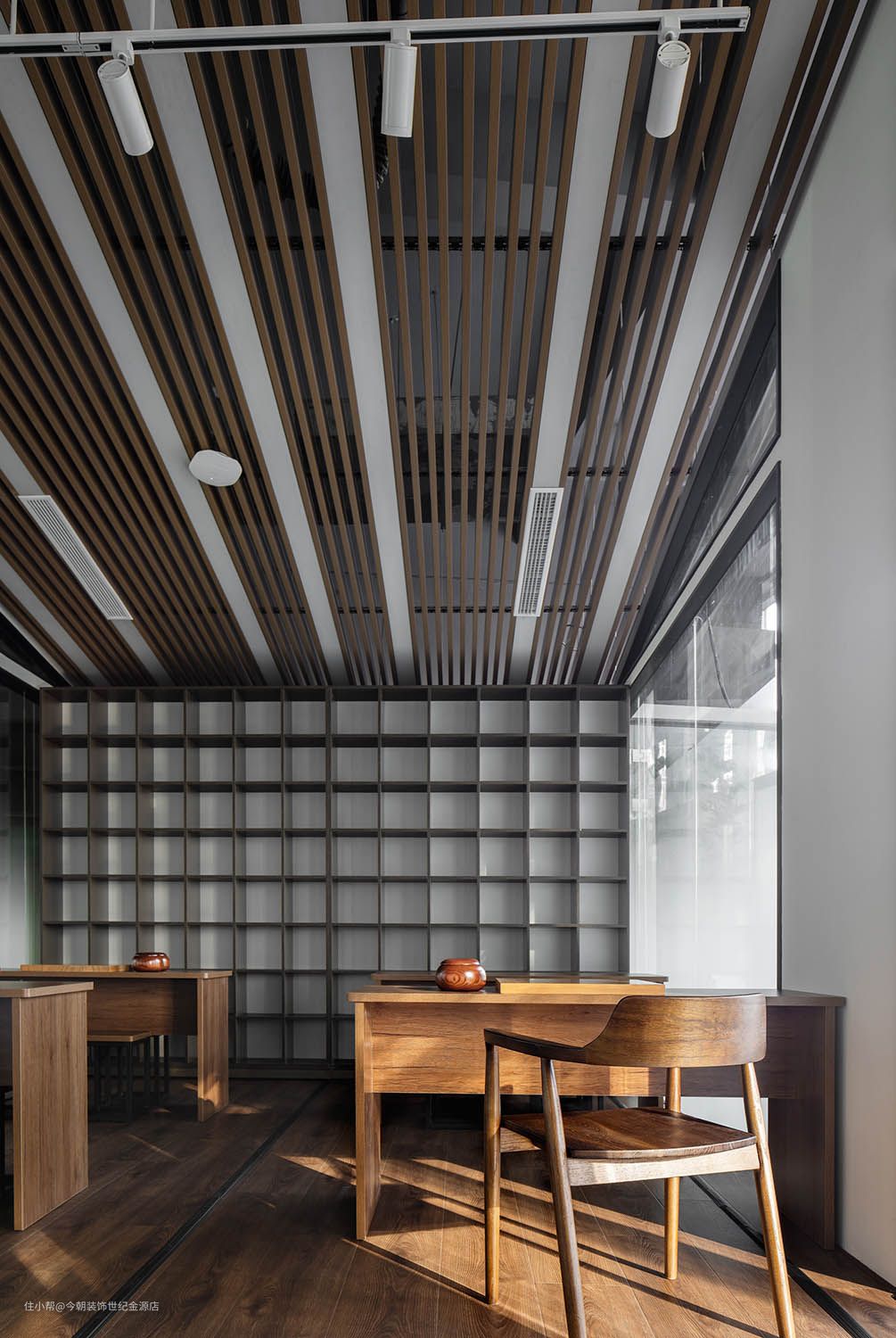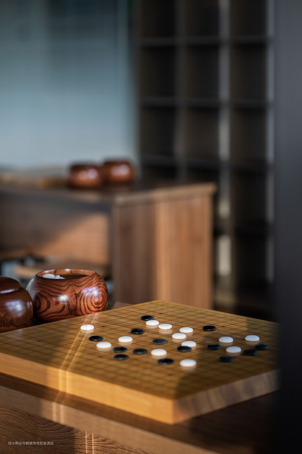 观棋不语,空间以劲朗利落的黑白线块作为回应,借干脆的姿态,打造心无旁骛的棋力空间。