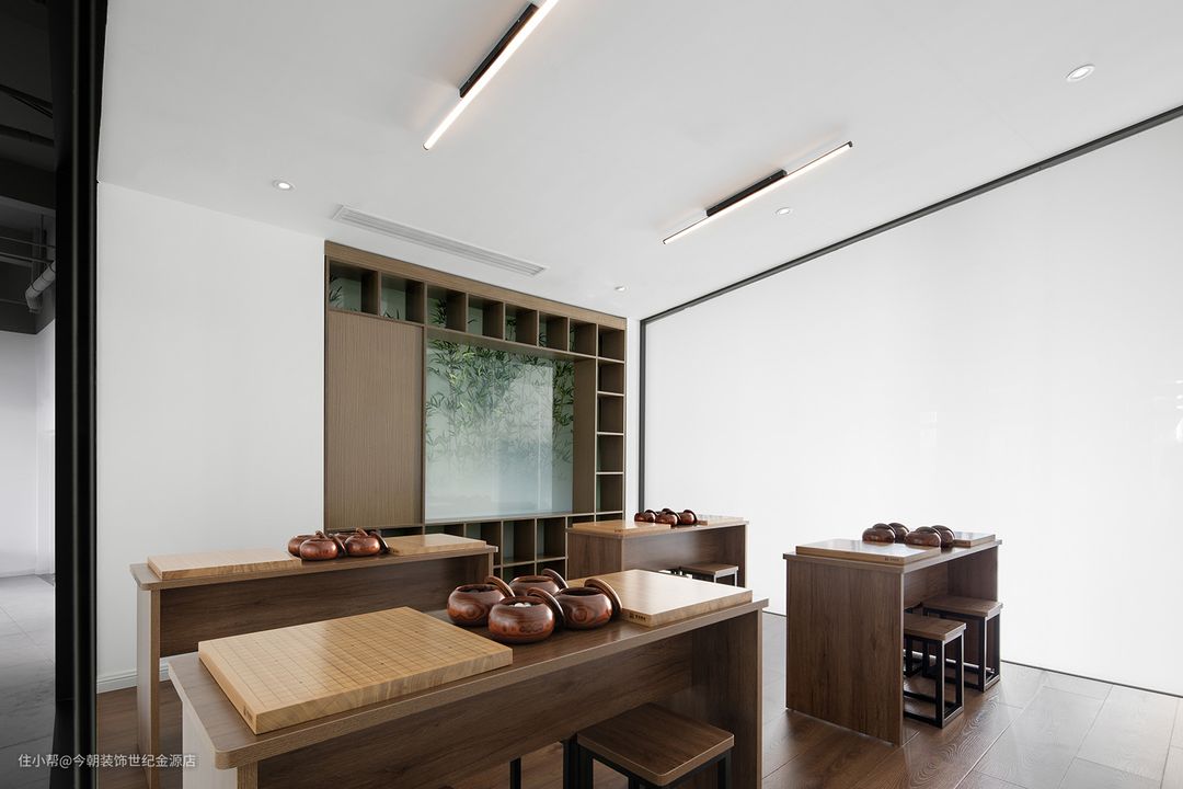设计既要考虑功能的实现,更应关注空间主理人本身。长时间的紧张让头脑昏昏沉沉,不如择一处安宁回味余温。同时又兼顾闲暇之余的学习,亦能一起研究与探讨高手之间的博弈。
