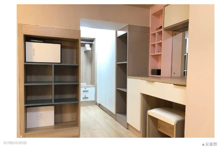 ▲女主人最喜欢的就是这个梳妆台!白+粉的少女心配色,梳妆镜+开放格+封闭柜+抽屉,颜值和收纳量双双能打!每天起床在这梳妆,心情不要太美丽。