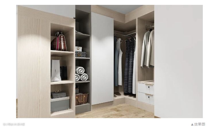 ▲衣帽间内部空间一点都没浪费,转角大衣柜顶天立地转角大衣柜,转角区域也放过。
