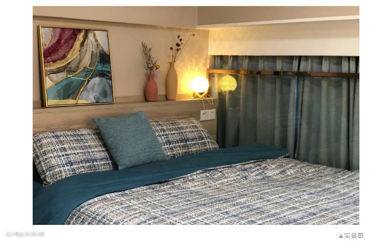 ▲二楼同样吸睛!映入眼帘的是一个超大地台床。精心设计的床屏预留了插座位,手机充电插小夜灯都方便,小小台面还能摆放些装饰品。