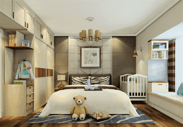 ▲房间里的衣柜全部做成圆角柜,不让宝宝受伤;小空间的收纳柜,保证宝宝不和你玩“捉迷藏”,不做抽屉,也不会导致宝宝受伤。