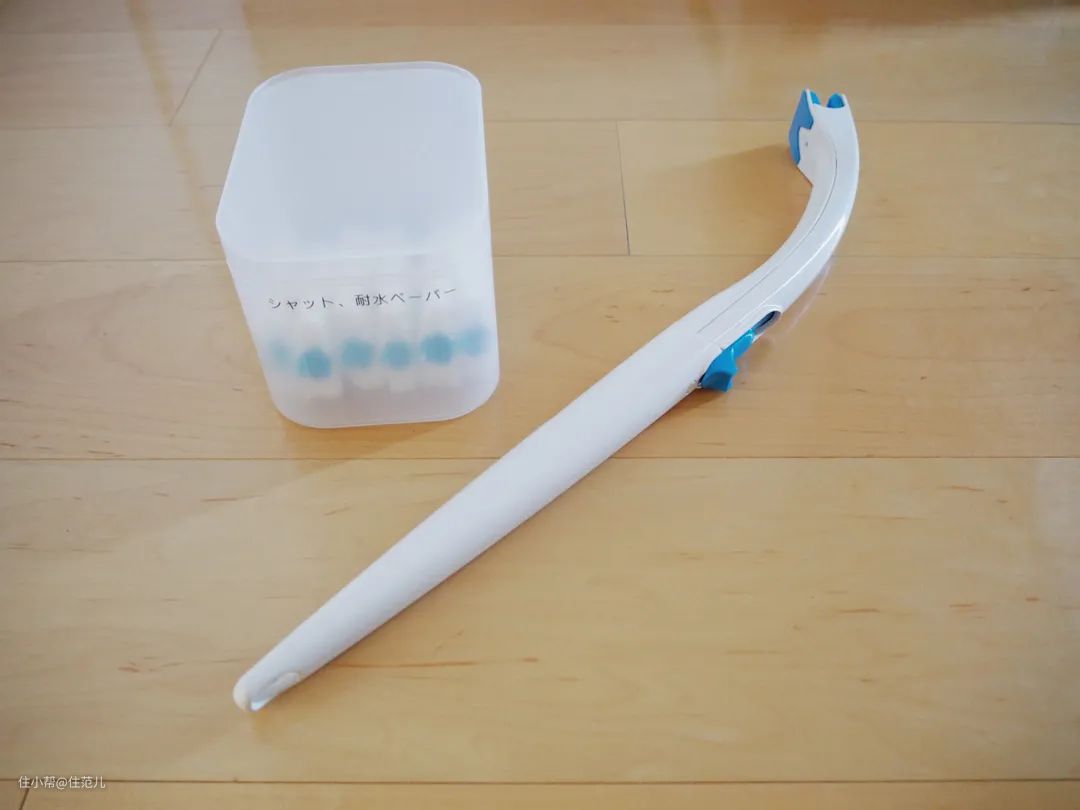 很轻便的造型,有刷杆和一次性刷头两部分,刷头是可溶解无纺布,上面附有清洁剂成分,不需要再准备其他清洁剂,清洁死角很方便。