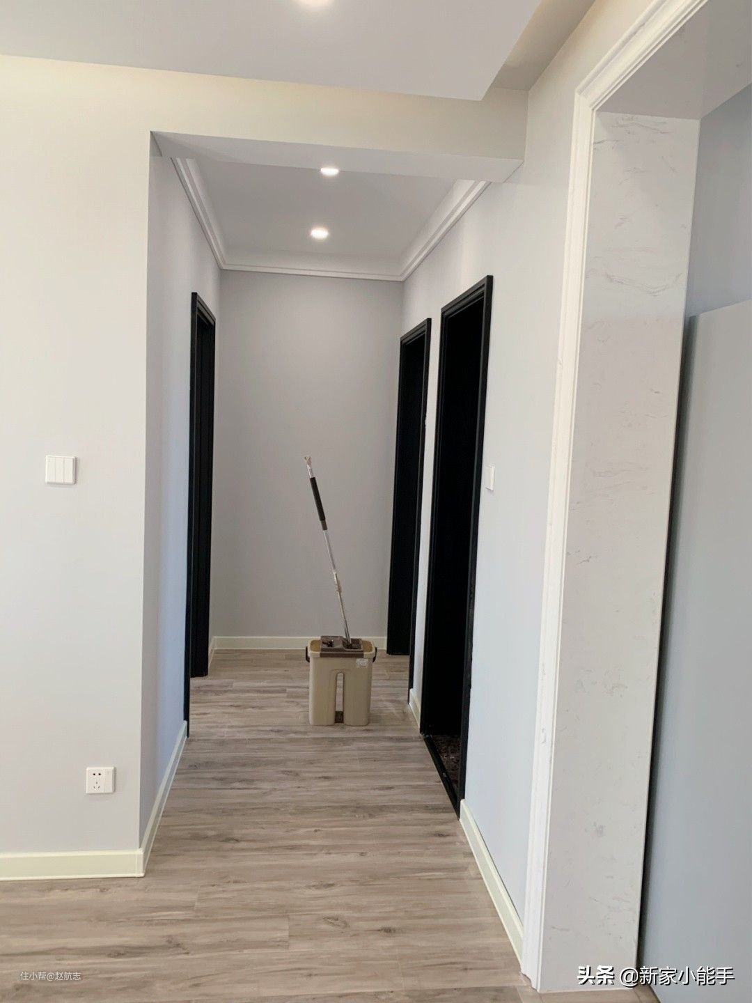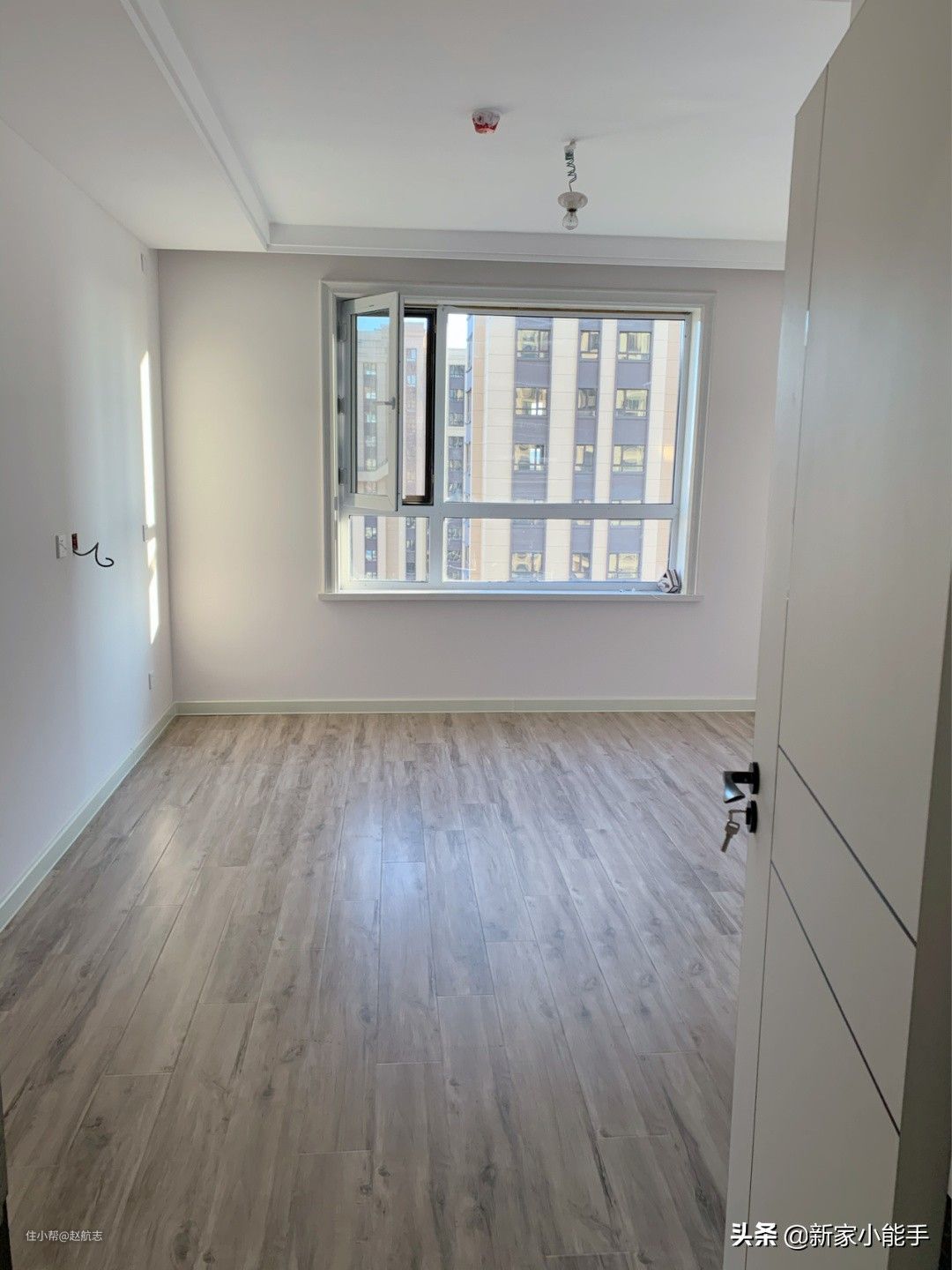 硬装完工,全屋铺木地板,墙面刷网红灰色,还没家具就很满意