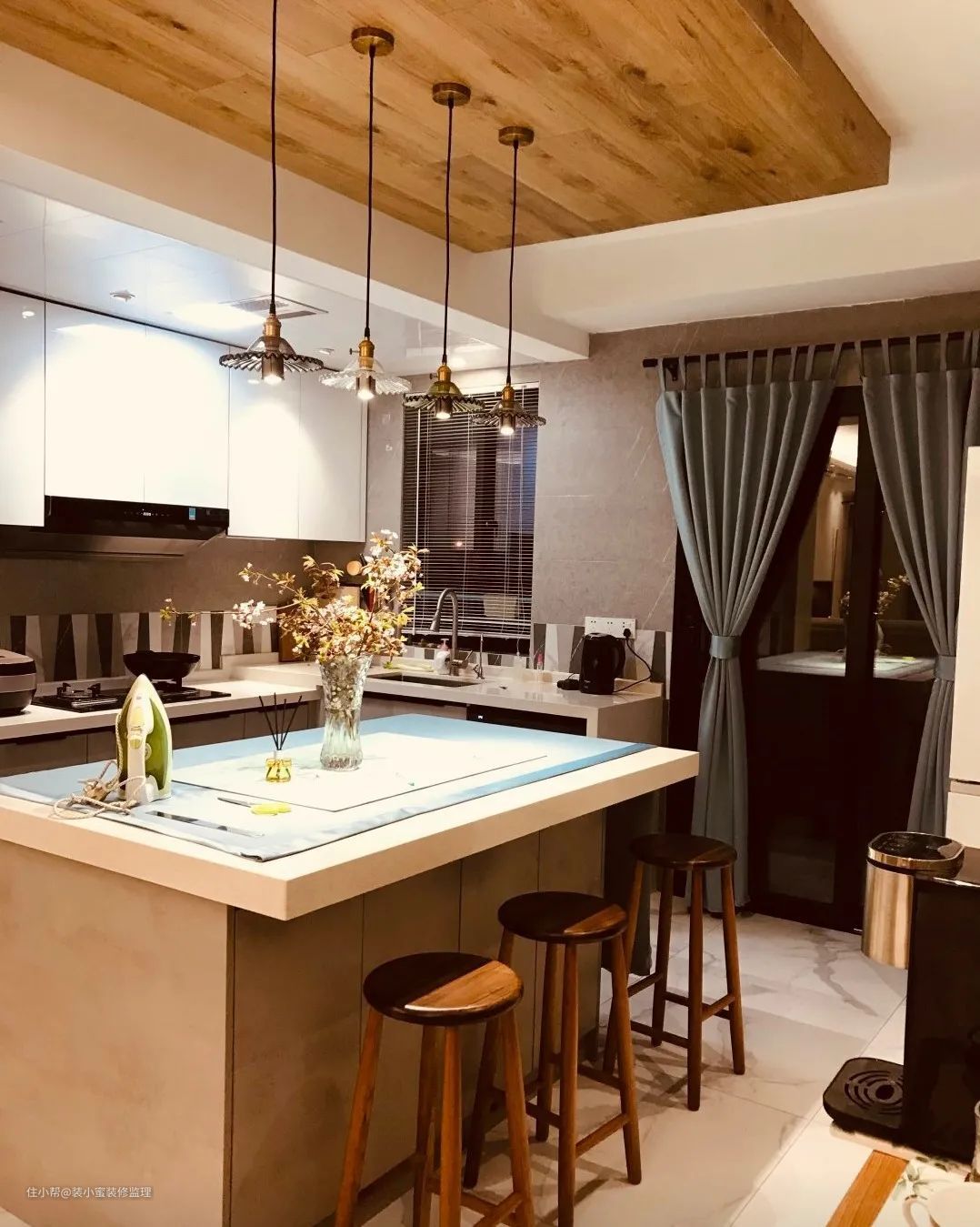 屋主这次装修,结合老房子不堪回首的使用体验,76cm高的砖夹橱柜,洗菜洗碗洗得腰酸背痛,翻了很多案例,最终决定装高低台面,台面高度是低台82cm、高台89cm、中岛90cm,适合身高158-175cm的人使用,洗菜再也不用弯腰驼背!