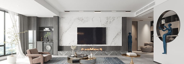 电视背景墙,空间妥妥的“C”位,很多朋友为了彰显家里逼格,把劲儿全用电视墙上了,各种繁复的石膏线勾边、壁龛式设计、墙面一体柜......