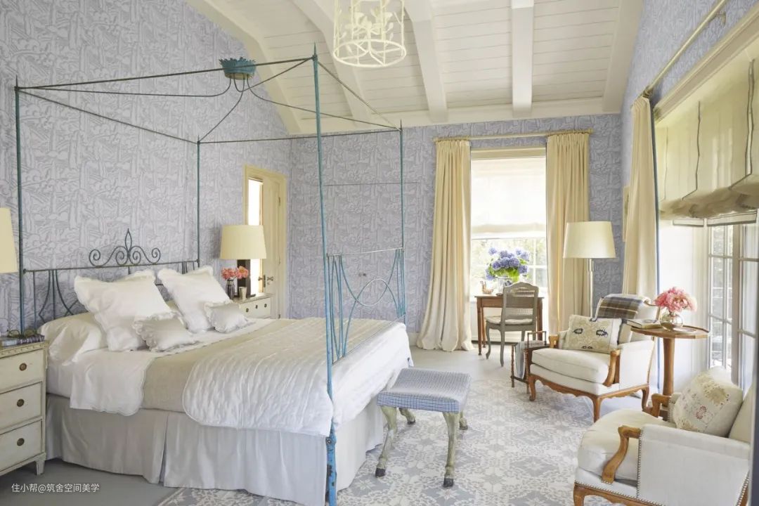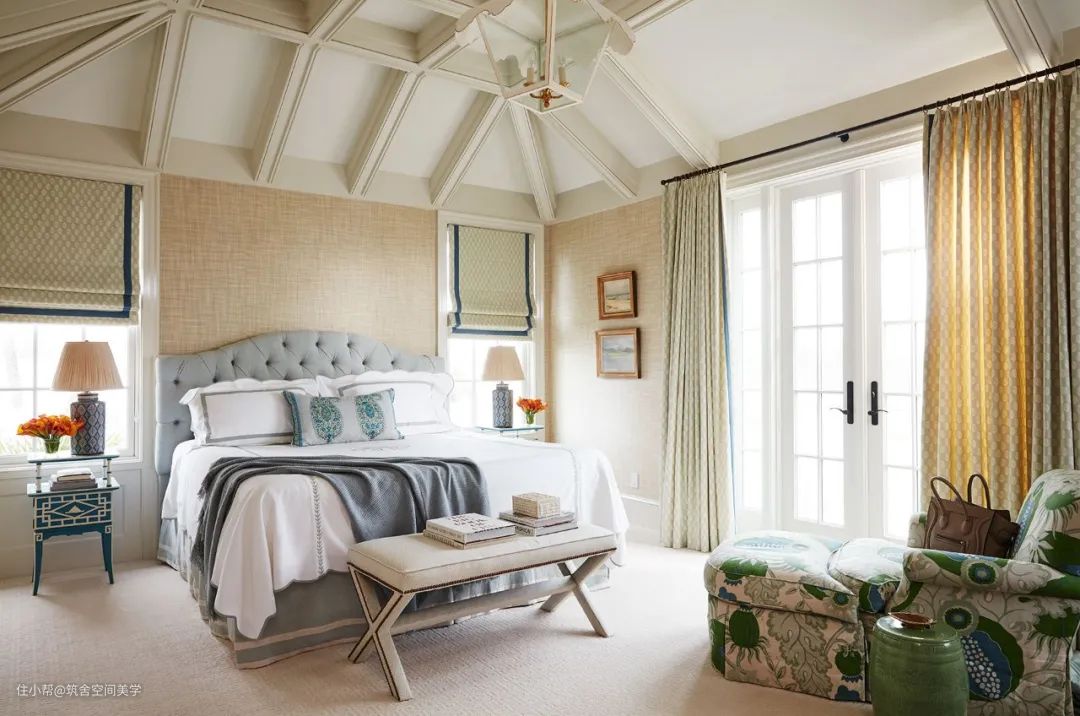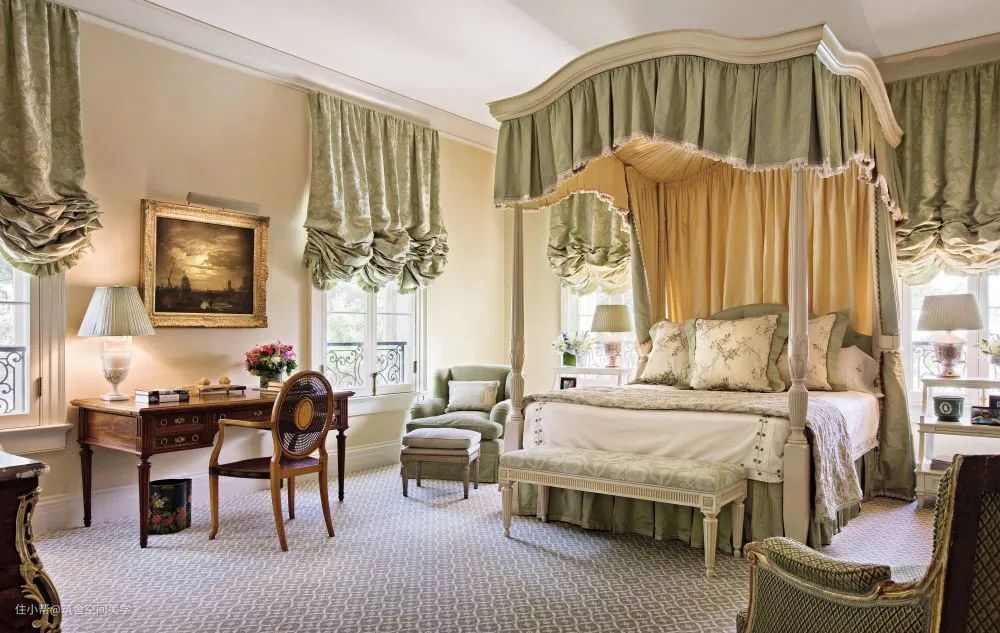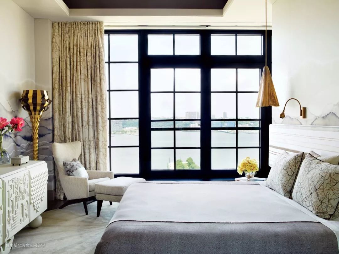 卧室的窗帘应该很好地保护房间免受街道光线的干扰:对于那些窗户朝南或住在繁忙街道上的人尤其如此。在卧室中,许多窗帘都由半透明的轻质织物和厚重的帘幕组合在一起制成,这样在保证实用性的同时又不失浪漫,而且厚实的窗帘所具有的沉稳的色彩有助于睡眠。