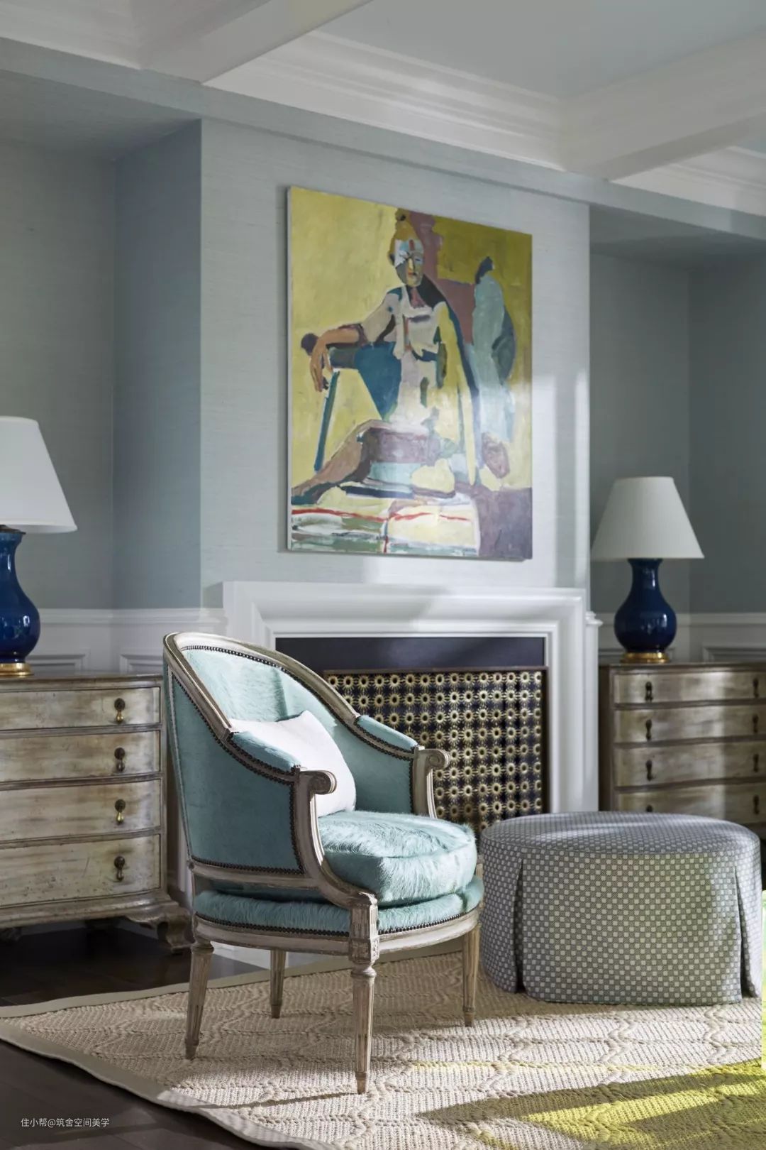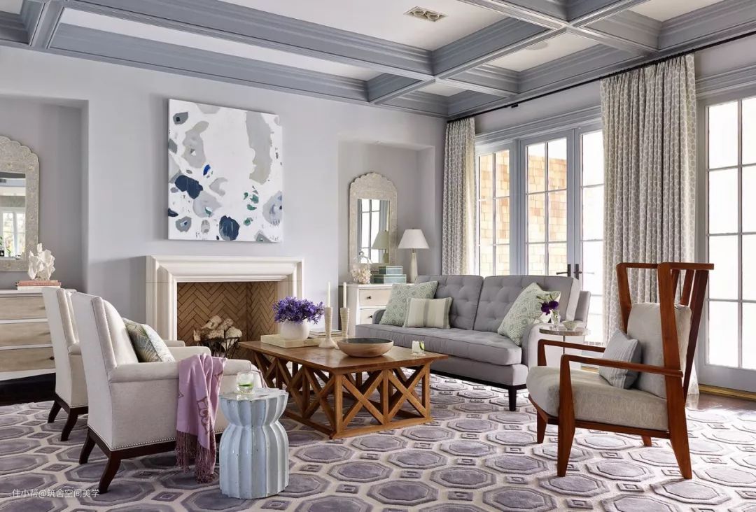 这样的固定搭配会给人协调、丰满的印象,不会产生窗帘“喧宾夺主”的情形。通常,这种方式是为了保障视觉范围内所有颜色的“进”“退”的一致性,也是为了强调设计风格的完整性。