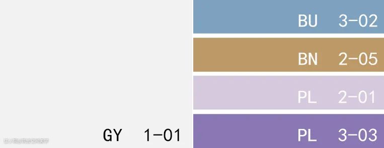 亮白色、黄昏蓝、淡金色、浅薰衣草色、佩斯利紫