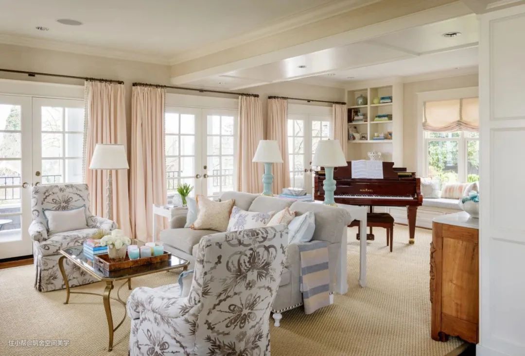 中性色调与灰色调是这类窗帘搭配的主要基调,它们既能营造富丽奢侈的视觉个性,也可以演绎幽雅宁静的唯美氛围,还能结合各类情调与风格诠释部分趣味性以及精致感。