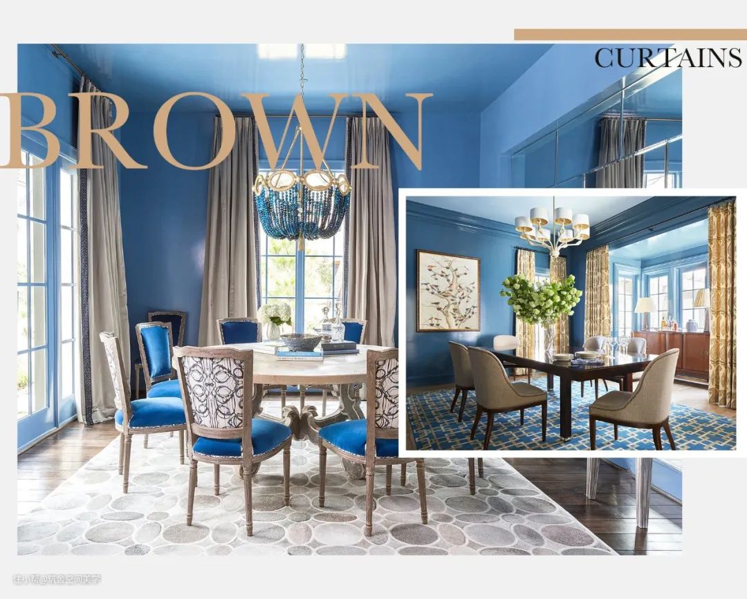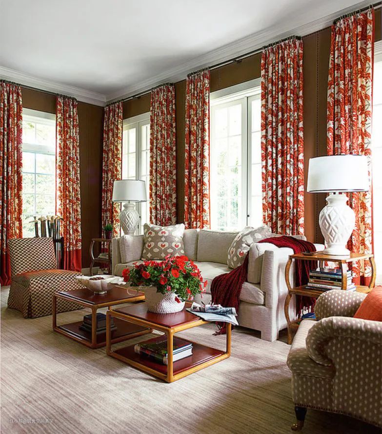 在各色各样的窗帘搭配中,采取与室内主色一致的方式并维持固定的格调以及质感,在色彩组合形式上,以“同色系”和“近似色”的叫法相较准确。