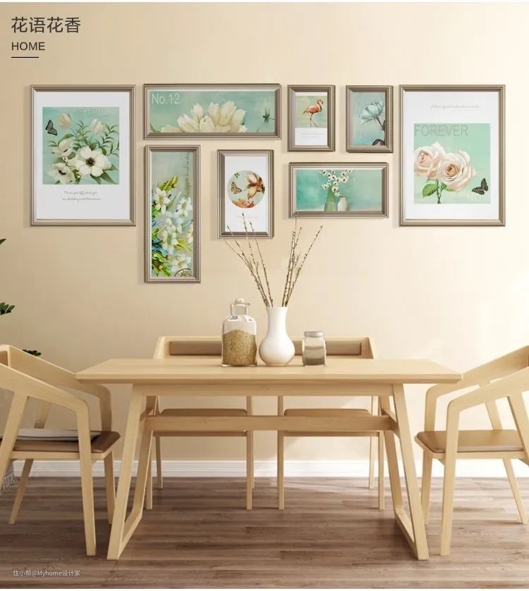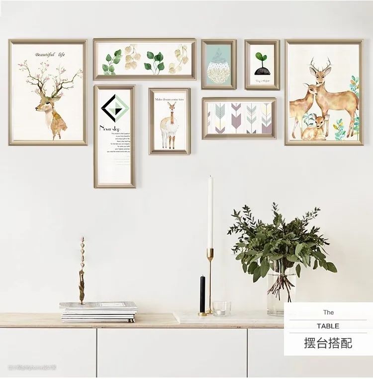 不管是麋鹿或是花卉,在客厅、餐厅主墙排列充满自然感的相框,立刻就能点亮整体风格,看腻了直接抽换,也相当方便。
