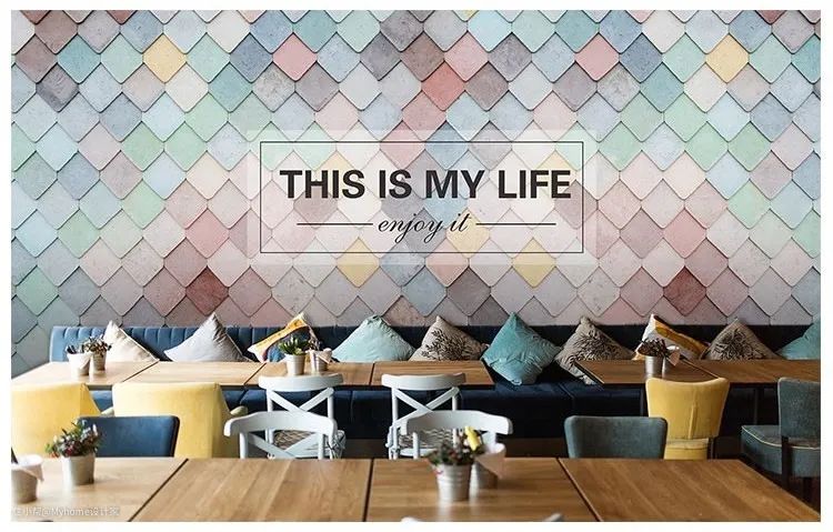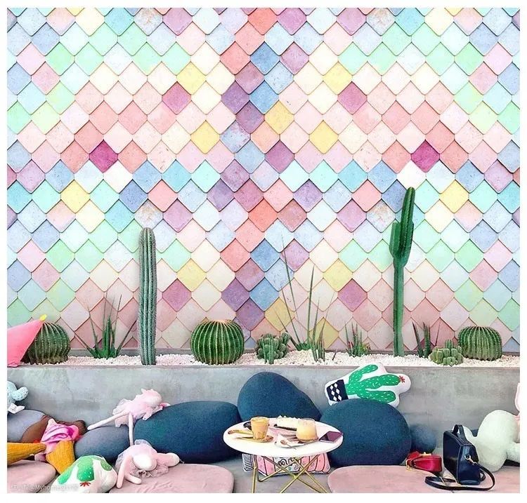 2 ) 彩色仿瓷砖 3D 马卡龙色背景墙纸