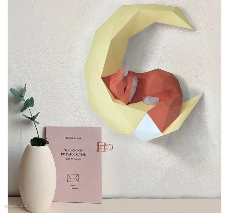 20 ) 北欧风立体狐狸月亮 DIY 纸艺壁饰