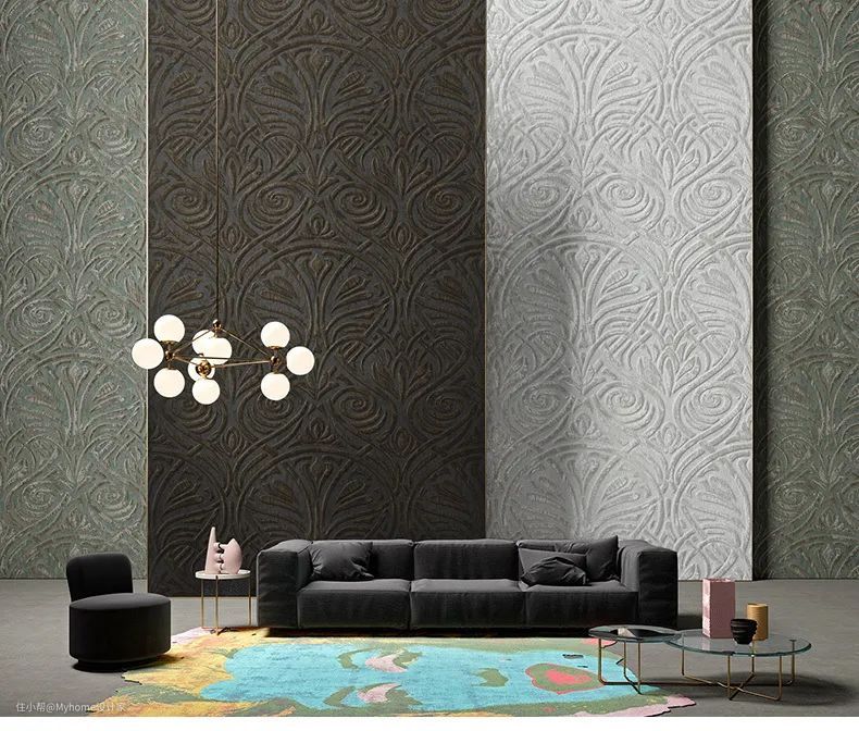 奢华的花纹很适合搭配简欧风格、北欧现代,不论是客厅或卧室,当做背景墙布置使用,低调色系却显得性价比高!