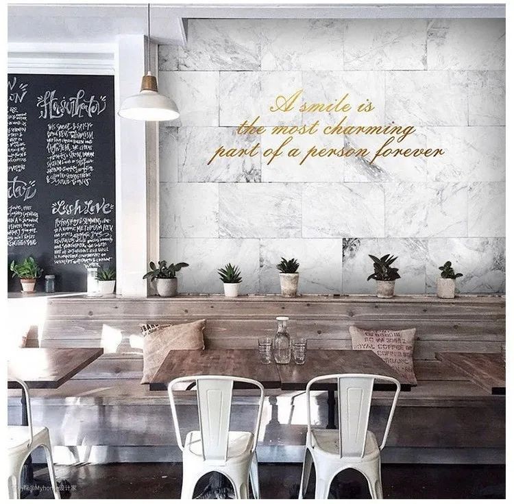 大理石的价格并不是十分平易近人,不如改成仿大理石纹路的壁纸,去修饰家中的墙面,即便没有真正石材的触觉跟光泽,但拍照起来也是非常网红。