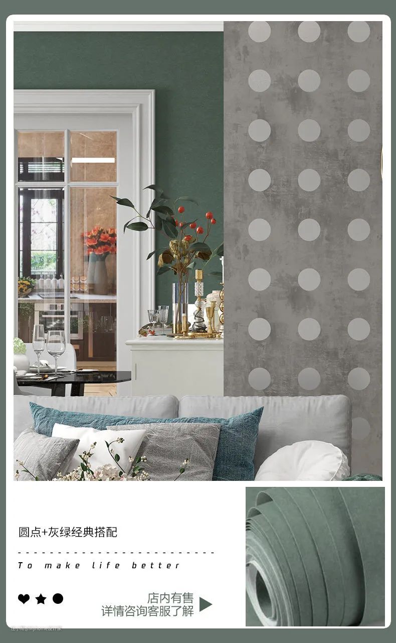 墙面拼色在INS风的带动下,早已火红多年,不如试试这款波点的墙纸与灰绿素色、或脏脏粉的墙面一同搭配,出乎意料的耐看。