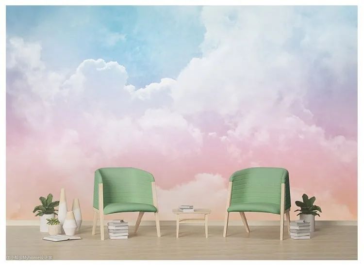 如果想要把家里布置得甜美一些,有种身在云端的浪漫,这款壁纸绝对是你的最佳选择,渐层的色彩设计让壁纸不会过于呆板僵硬,很适合拿来布置儿童房。