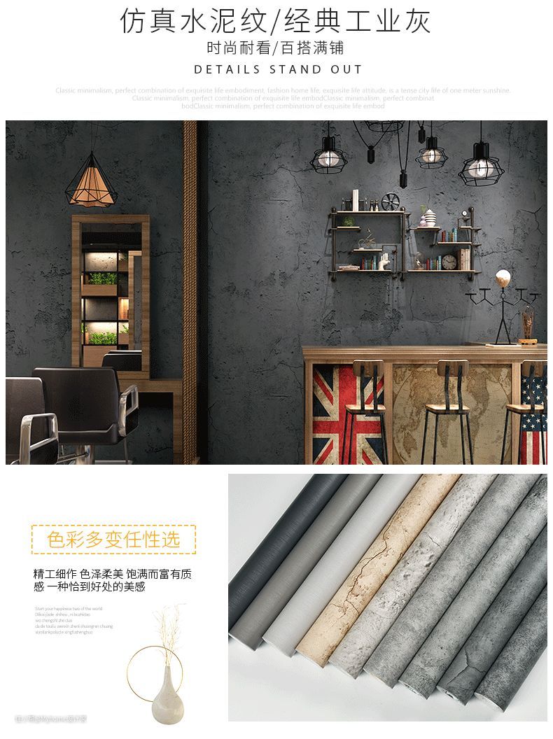想要工业风的自然质感,仿真的水泥纹路搭配粗旷的木头、石材等相得益彰。挺适合喜爱原始裸材质的硬汉男性,或是宿舍布置也能试试!