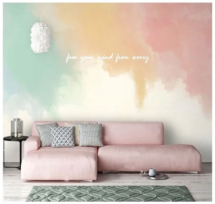 泛黄的白墙看得好腻,又觉得 DIY 涂油漆太过麻烦,不妨到淘宝挑选水彩渲染感的壁纸款式,不会有油漆滴到地板的困扰,又能拥有类似的质感。
