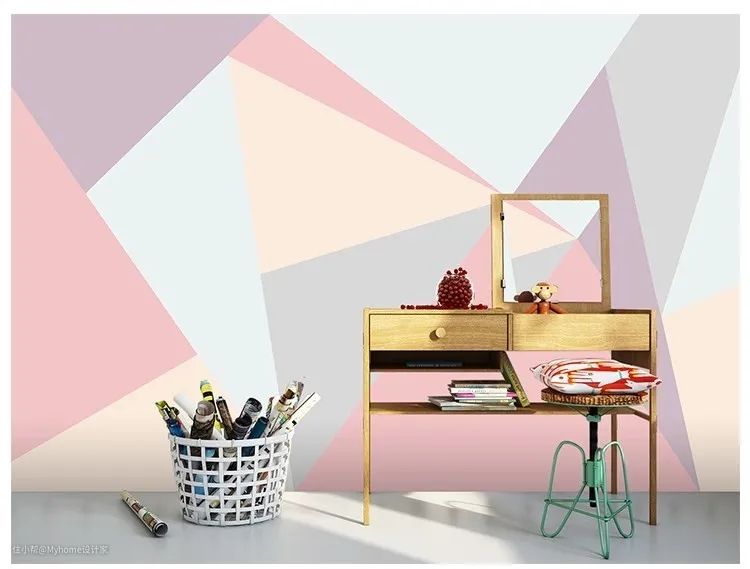 常常会想说墙上要不要挂一幅画,又怕挂错显得奇怪,不如直接在淘宝选入有抽象图腾的薄荷绿壁纸,在炎热的夏天光看了心情就感到舒爽。