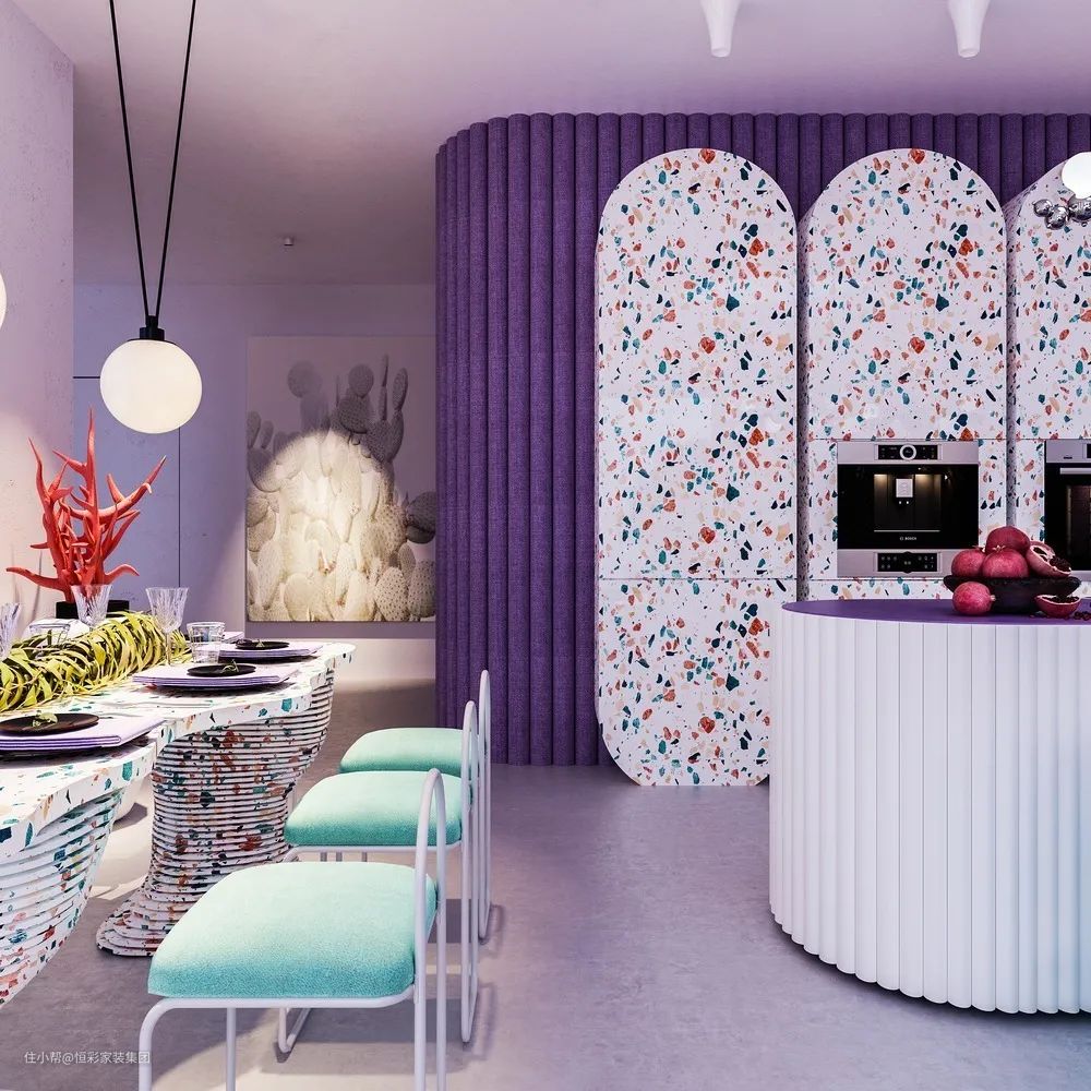 500多年前在威尼斯人房屋中使用的这种典型大理石地板在1970年代首次卷土重来。在2019年,这种材料又卷土重来,再次在设计师中流行起来。如今,我们看到的水磨石混合了较大的大理石,石英,花岗岩和玻璃碎片,密度较小,图形外观更为醒目。