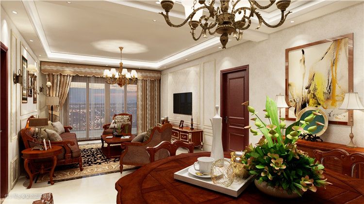 美式风格,选用的美式家具精致奢华,让空间更为稳重,不管是功能设计还是美学艺术都为业主提供一种生活的品质感。