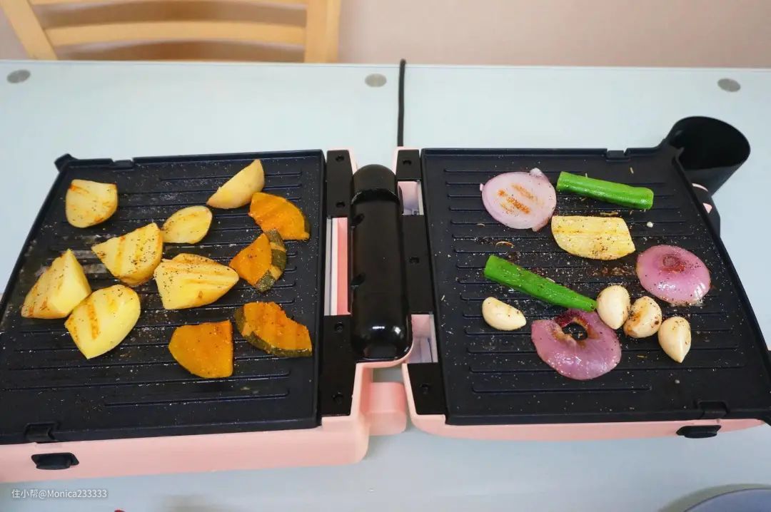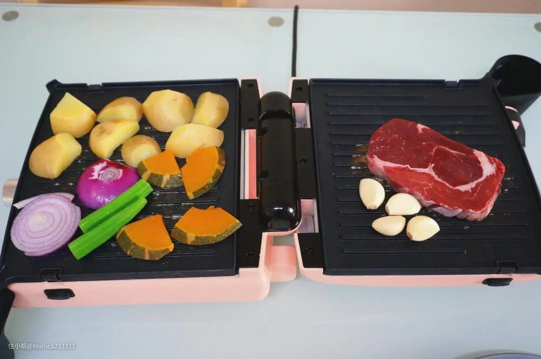 最近因为快要双节放假的关系,各大购物网站都开始推各种或出门旅游或宅家娱乐的产品了。本来只是逛着好玩的,结果没想到滑到了这个无言牛排机的时候,我就被它的外型吸引了。点进去之后页面介绍的好好用,重点是双面烤盘,可以展开一起用。