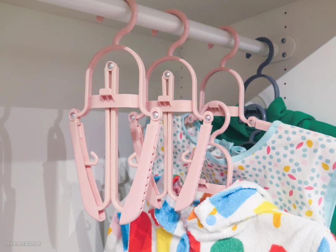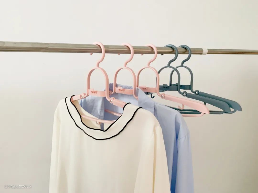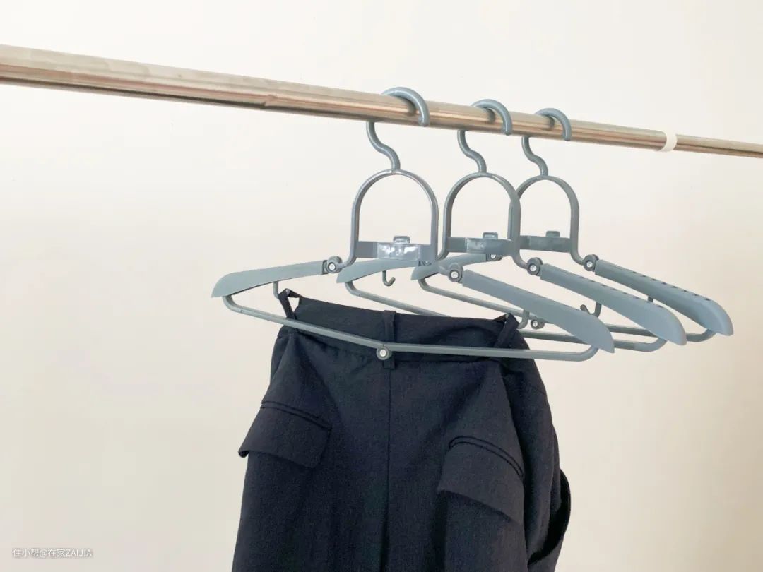这样叠挂一下,能更大程度利用空间,挂更多衣服。