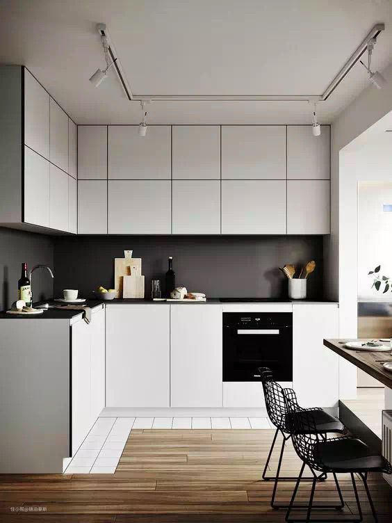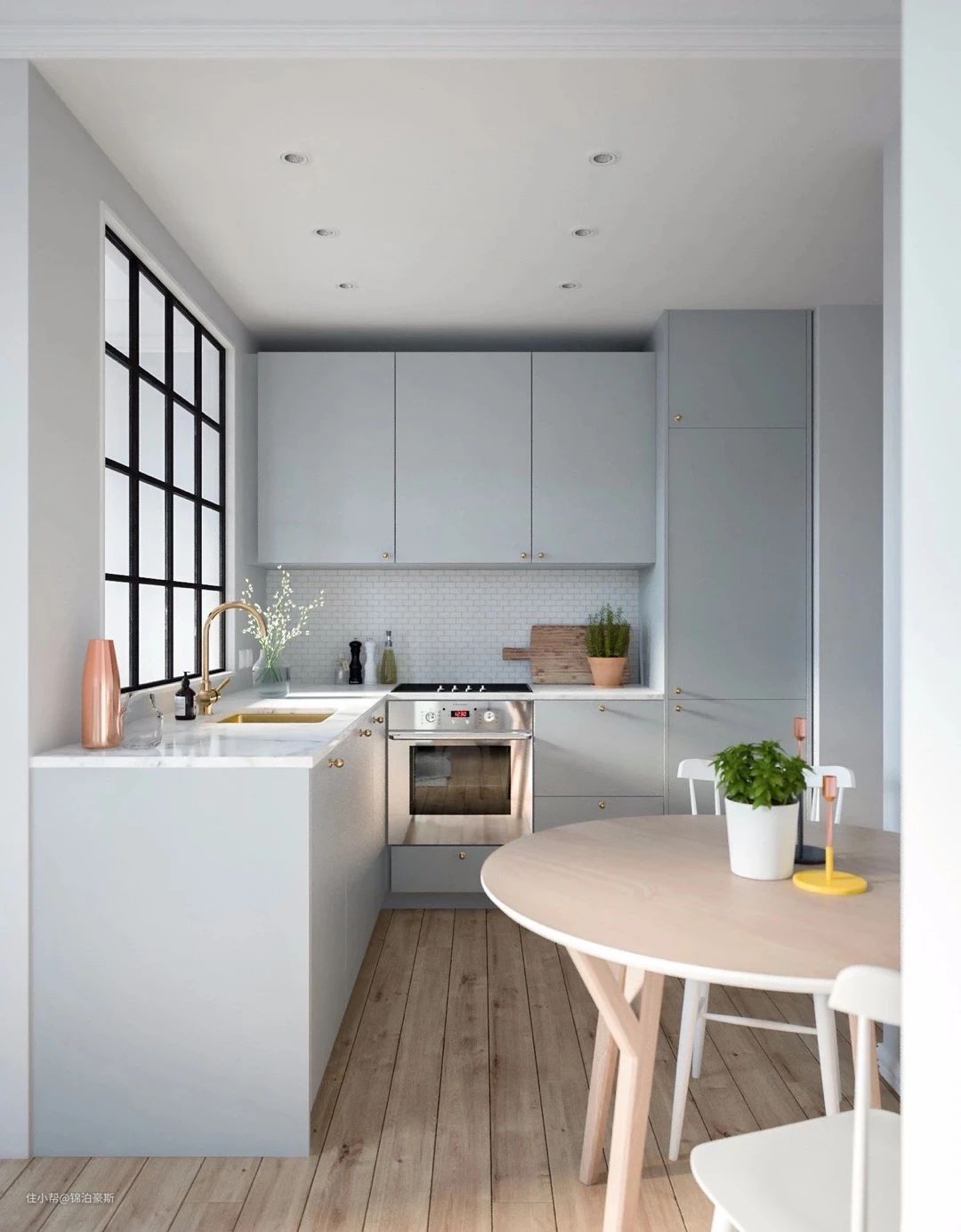 白色纯洁简约,是最百搭的颜色,在橱柜的运用上,非常适合面积小的厨房,会让空间显得更加开阔。