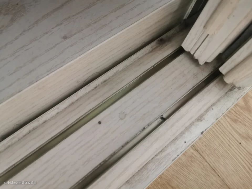 厨房门、阳台门、衣柜门、隔断门......都是推拉门,卫生死角会清理到怀疑人生,吸尘器和扫地机器人都没法清理,像这样: