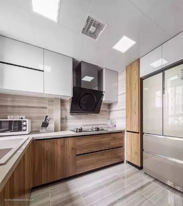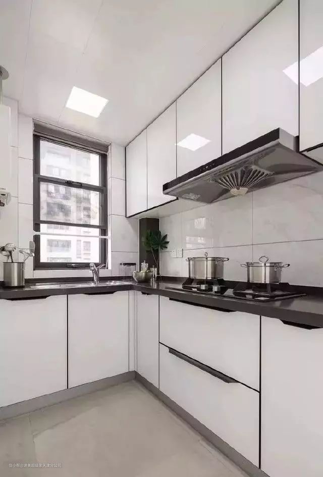 L型橱柜是很多厨房比较常见的布局,也是最节省空间的一种方式,清晰的厨房分区,可以让炒菜、切菜的流程进行的更加顺利,不管大小户型都挺适用的。