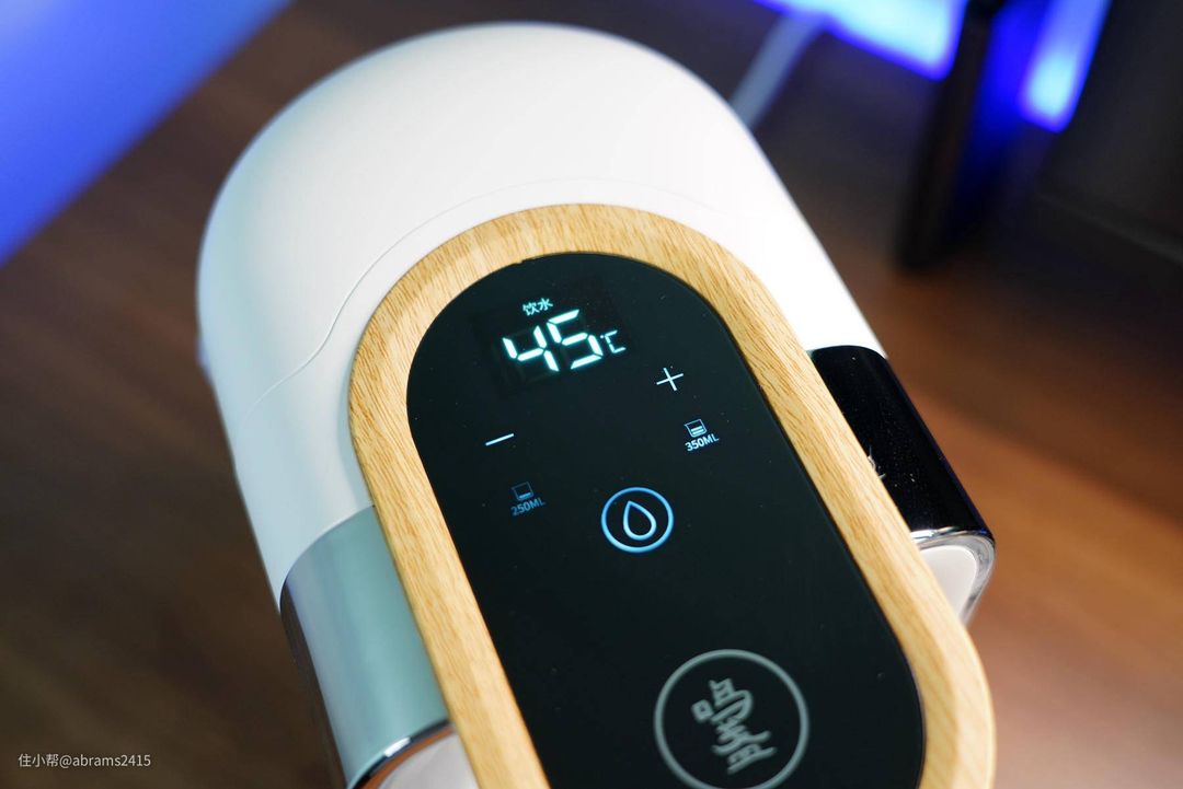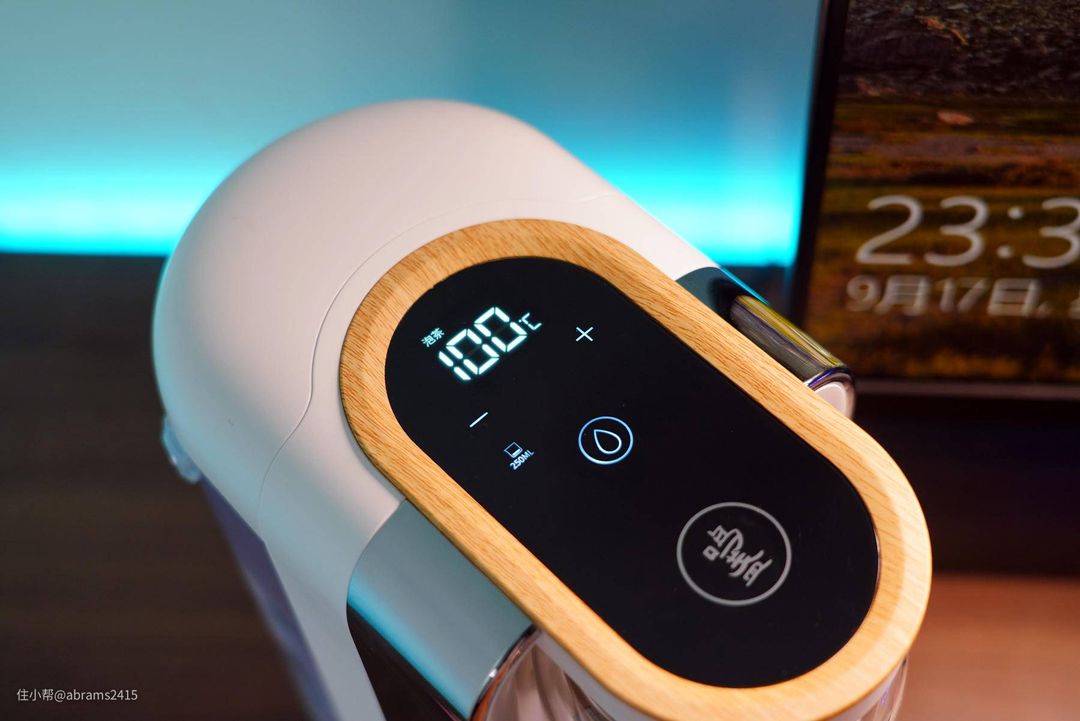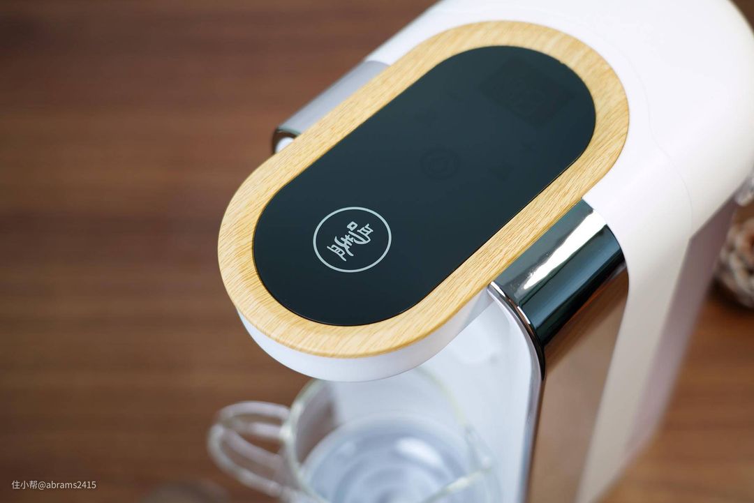 ▲顶部是茶饮机的控制面板,采用触摸式设计。一圈仿木材质增加了茶饮机的文艺气息
