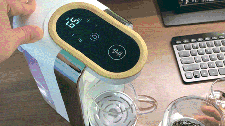 ▲只需轻轻触摸出水按钮,就能自动进行茶水冲泡(动图做了加速处理)