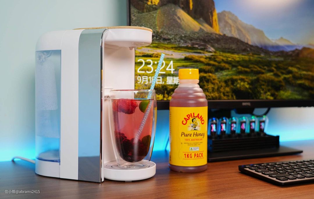 ▲当拿走茶仓后,即热茶饮机会转换成饮水模式,摇身一变成为桌面迷你水吧。想喝烫水、温水随我掌握。这不,泡上一杯蜂蜜水果茶,上上网、看看电影别提有多精致了