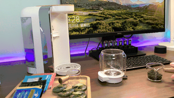 因为我平时下班回家会在工作室处理下工作邮件、上网及打打游戏。所以放置一台小型即热饮水机成了首要考虑因素。这不,这台鸣盏即热茶饮一体机就非常适合我这种办公人士——即不过多占用桌面空间,又能时刻提供新鲜的茶水。